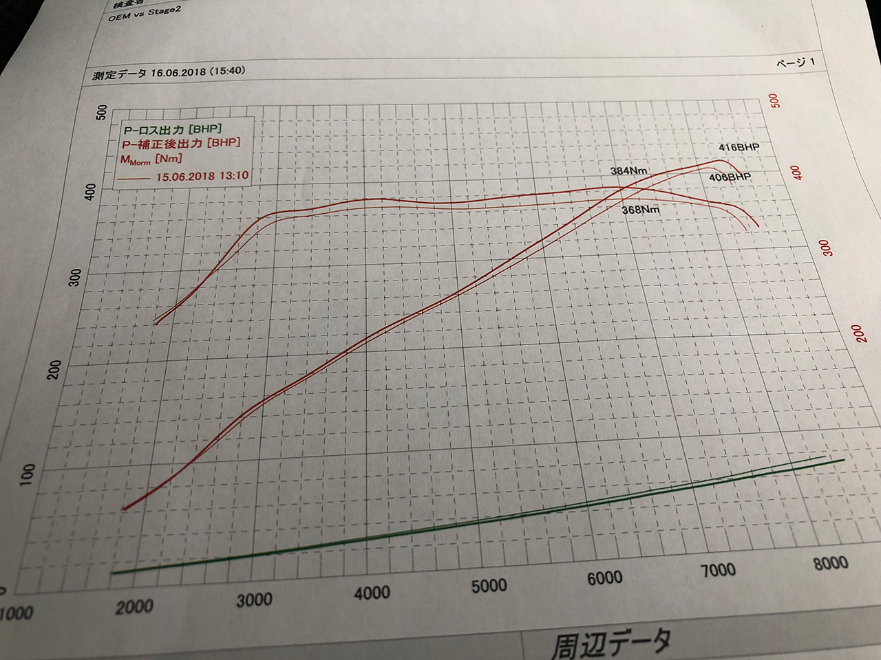 シャーシダイナモを使って実車に合わせてセッティングを繰り返し行い、どの様にチューニングされたかはビフォーアフターでプリントアウトされます。